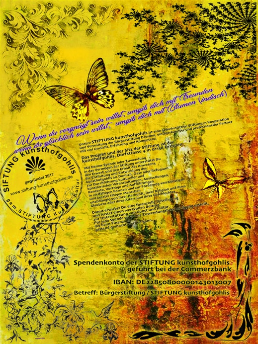 Ein großes Dankeschön geht an alle Künstler, Freunde, Helfer, Unterstützer, die ihre Kreativität, ihre Hilfsbereitschaft kostenlos zur Verfügung stellten und ALLE! Einnahmen der Stiftung - kunsthofgohlis zum Erwerb und Erhalt des Kunsthofes zu Gute kommen ließen.